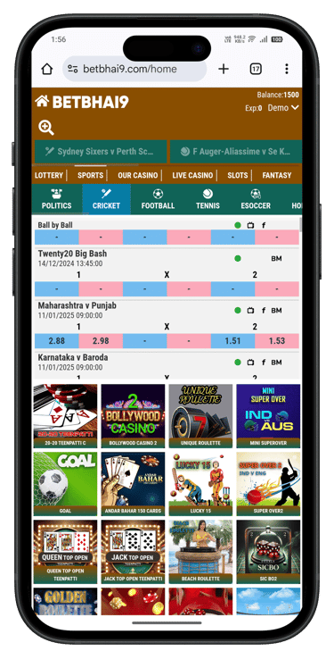 Experience thrilling gambling with slots and sports betting at BetBhai9 India today!